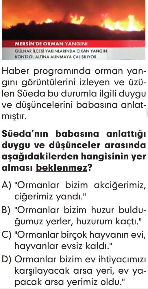 4. Sınıf Onun Yerinde Olsaydım Test 1