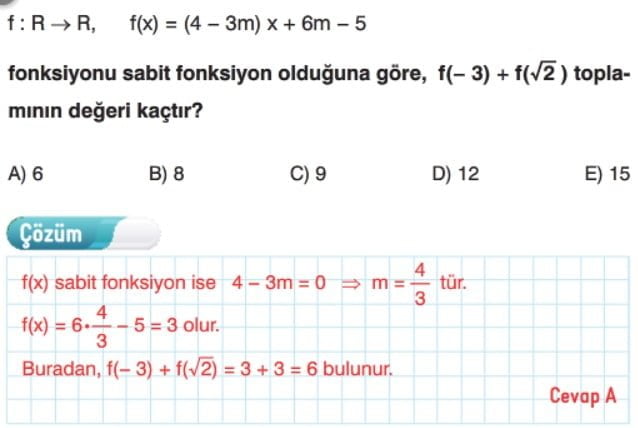 Fonksiyon Çeşitleri Çözümlü Sorular