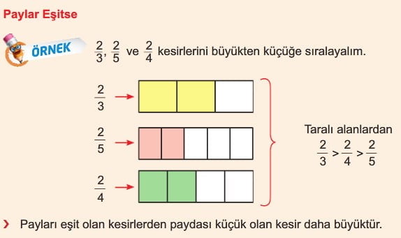 5. Sınıf Kesirleri Sıralama Konu Anlatımı Matematik