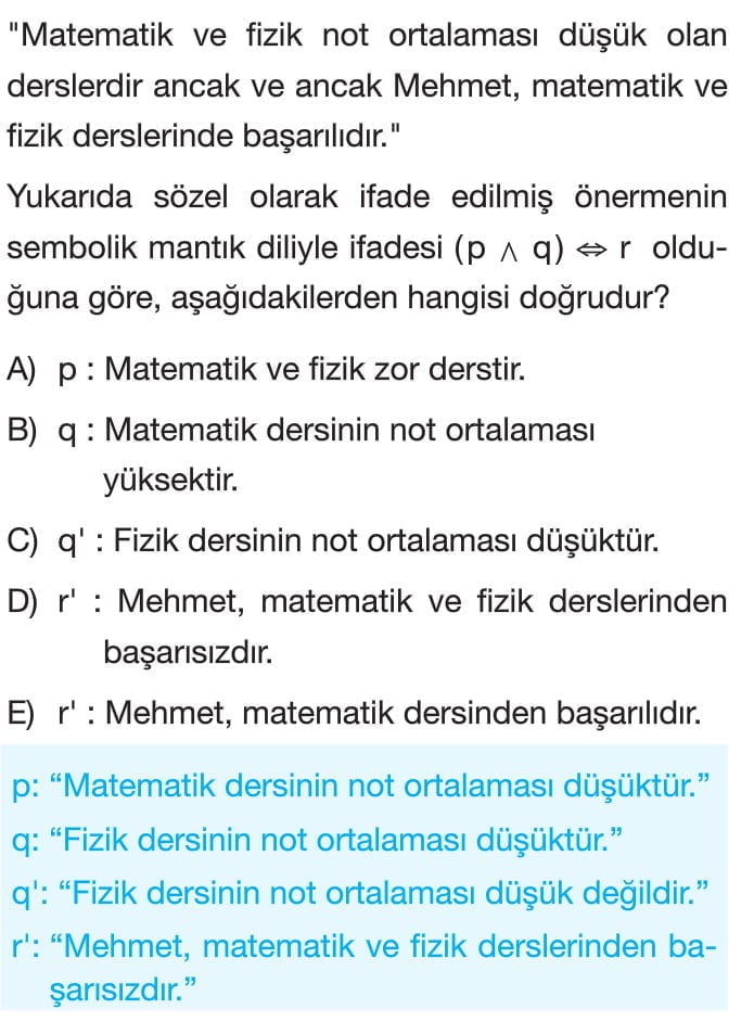 9. Sınıf İki Yönlü Koşullu Önerme Ancak ve Ancak Bağlacı Konu Anlatımı Çözümlü Sorular