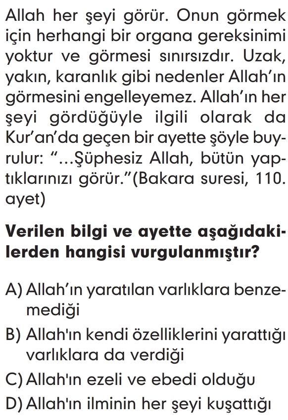 5. Sınıf Allah (c.c.) Görür ve İşitir Test 1